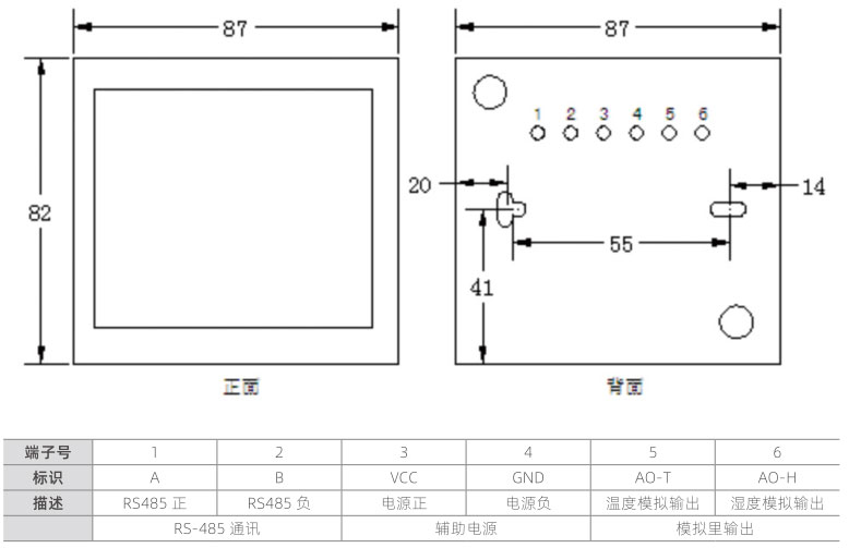 适用于室内房间温湿度等环境信息采集;-20℃ ~+70℃ ±0.5℃;0~100%RH±3%RH。